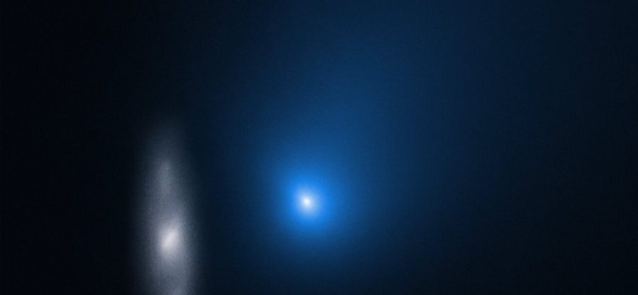 Nella foto si vede nello sfondo anche una galassia, per la precisione 2MASX J10500165-0152029 a milioni di anni luce da noi, sfocata perché la fotocamera di Hubble stava mettendo a fuoco la cometa in primo piano.