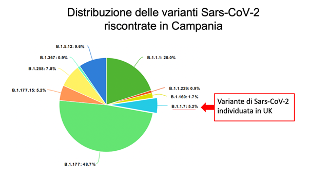 Un gruppo di ricercatori esperti di sequenziamento genomico coordinato dal Prof. Davide Cacchiarelli presso l’istituto Telethon di Genetica e Medicina di Pozzuoli, il TIGEM, ha determinato la sequenza completa del genoma virale in 115 tamponi positivi per il SARS-CoV-2 eseguiti negli ultimi mesi in Regione Campania dall’Istituto Zooprofilattico. Tra questi campioni è stato possibile analizzare anche 6 tamponi recentemente ottenuti presso l’aeroporto di Capodichino in persone provenienti da Londra: tra questi è stata riscontrata la presenza della cosiddetta “variante inglese” di SARS-Cov2, sulla quale rimangono ancora molti aspetti scientifici da chiarire per valutarne l’effettivo impatto sulla salute pubblica.