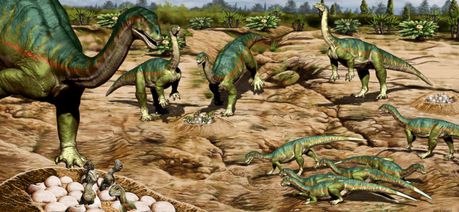 Diego Pol e colleghi del Museo Paleontológico Egidio Feruglio, Trelew, Argentina, hanno scoperto i resti scheletrici fossilizzati di 69 individui e 100 uova appartenenti alla specie ‎‎Mussaurus patagonicus‎‎ nella Formazione Laguna Colorada in Patagonia, Argentina.