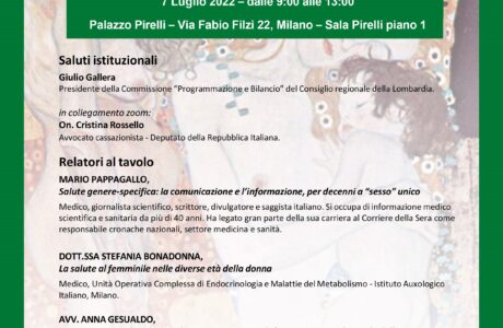 Giovedì 7 giugno, alle ore 10, presso la sala Pirelli del Palazzo Pirelli via Fabio Filzi N.22 Mlano, si terrà un convegno dedicato alla Nuova Era della Medicina di Genere Specifica: No one left behind.leggi