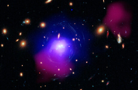 Gli astronomi hanno scoperto una gigantesca eruzione da un buco nero supermassiccio in un ammasso di galassie. Parte del gas inviato lontano dal buco nero dall’eruzione alla fine si è raffreddato abbastanza da formare numerosi ammassi di stelle. Oggi gli astronomi vedono 19 ammassi stellari distinti che potrebbero essere collegatileggi