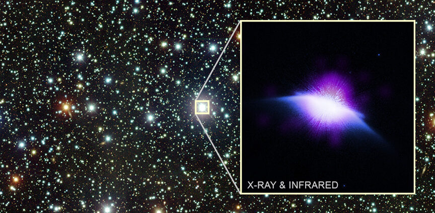 Chandra è riuscito a rilevare l’astrosfera intorno a HD 61005 perché produce raggi X mentre il vento stellare si scontra con polvere e gas interstellari più freddi che circondano la stella.